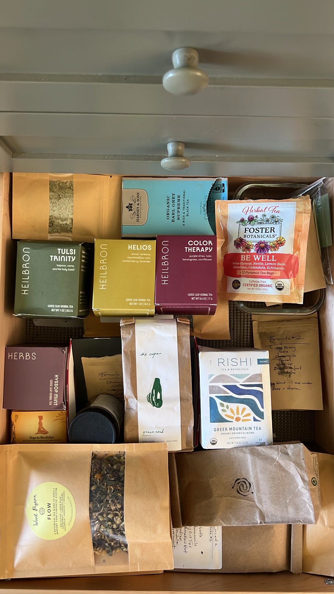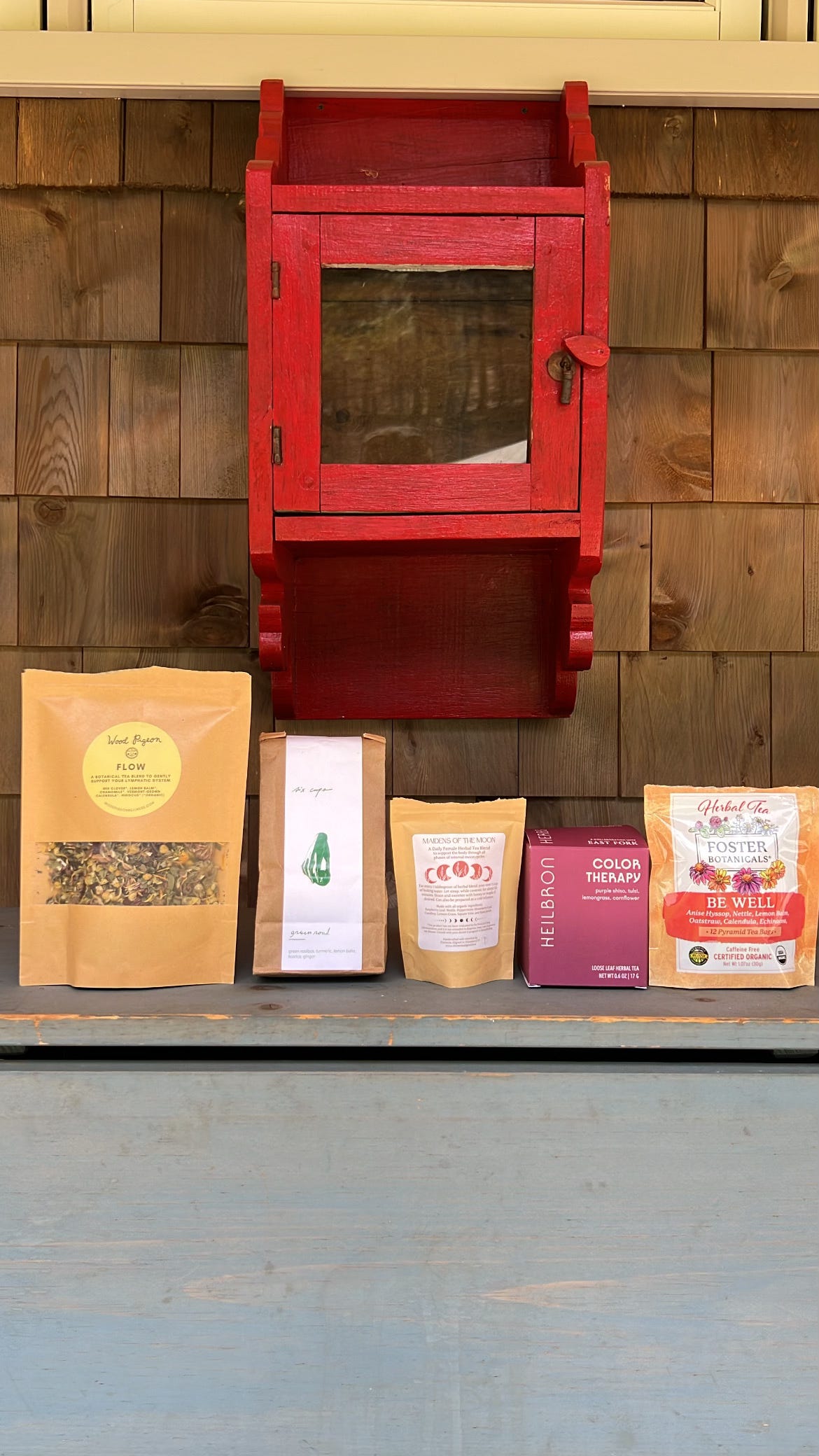 Elements Aligned / Maidens Of The Moon / My relationship to this tea makes me want to cry. Made by my dear friend and fellow Vermonter, Claire Keith, this tea has held me in the darkest of times. As someone who lives with endometriosis and adenomyosis, this is what I sip every time I feel myself beginning to cramp. This will always live in my tea drawer.